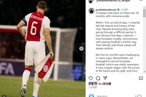 亨德森社媒告别:阿贾克斯永远在我心中占据特殊位置,祝未来顺利
