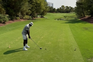 体育资讯7月15日讯 今日,湖人前锋詹姆斯更新Instagram Story,晒出他在拉斯维加斯继续练习高尔夫的片段。