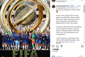 切尔西名宿马克莱莱在社交媒体上写道:“祝贺切尔西成为世界冠军!🏆