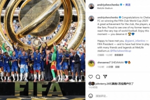体育资讯7月15日讯 舍甫琴科更新社媒动态,祝贺老东家切尔西问鼎世俱杯。