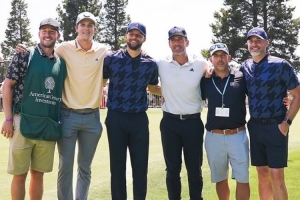 体育资讯7月15日讯 今天,勇士球星库里晒出了自己参加塔霍湖高尔夫名人赛的照片和视频。