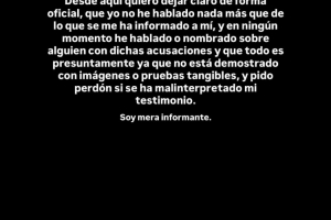 克劳迪娅-卡尔沃社媒发表声明:“在此我要正式澄清,我仅谈及我所获知的信息,从未提及或点名任何涉及这些指控的人,且一切均为推测性质,因为尚未有影像或确凿证据证实。如果我的言论被误解,我深表歉意。我只是信息提供者。”