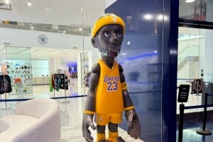 体育资讯7月16日讯 今天,湖人记者Harrison Faigen晒出了一张商店橱窗里超大的詹姆斯玩偶。