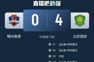 体育资讯6月25日讯 中超第15轮,凭借法比奥的帽子戏法,北京国安客场4-0大胜梅州客家,以10胜5平积35分的成绩,获得联赛半程冠军。