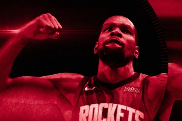 “对于任何还没意识到凯文-杜兰特在篮球场得分效率有多高的火箭球迷们来说,这是他上赛季的投篮分布图;