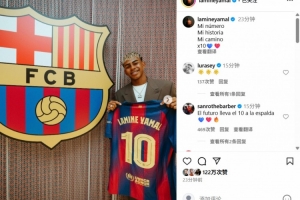 体育资讯7月17日讯 巴萨官方宣布18岁亚马尔续约并改穿10号,球员也更新社媒庆祝这一时刻。