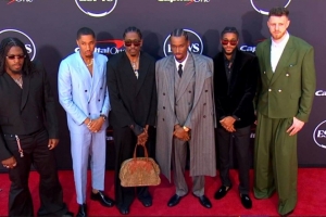 亚历山大携众队友现身颁奖礼,从左到右依次是:多特、阿隆-维金斯、杰伦-威廉姆斯、亚历山大、以赛亚-乔、哈滕。