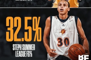库里09-10赛季夏联场均17.4分4.6篮板4.2助攻,三项命中率32.5/34.5/89.3%