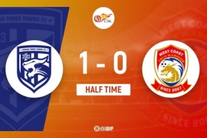 上半场补时6分钟,武汉三镇1-0青岛西海岸。