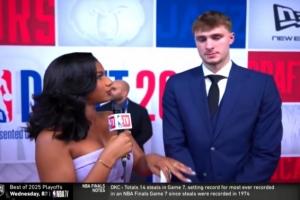 早早抵达现场的状元大热门弗拉格接受了采访。在被问及NBA高尔夫梦幻四人组时,弗拉格表示:“首先是迈克尔-乔丹,我知道他高尔夫打得很好。再想想,斯蒂芬-库里是个非常厉害的高尔夫球手。然后我知道塔图姆也打过一些,所以也许可以带上塔图姆。最后,我也能稍微展现一下我的球技。”