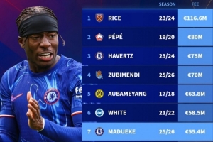 马杜埃凯是阿森纳队史第7贵引援,切尔西队史第6贵转出球员