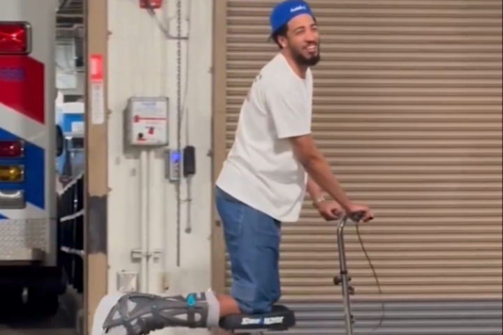 体育资讯07月19日讯 今日WNBA全明星赛在印第安纳举行。步行者当家球星泰瑞斯-哈利伯顿穿着保护靴,乘着车来到了现场。