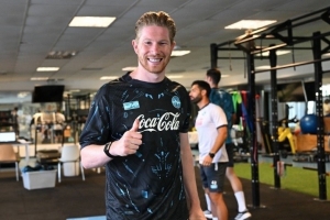 体育资讯7月19日讯 德布劳内参加了在那不勒斯的亮相发布会。