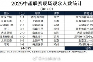 本轮总观众人数244693人,为中超史上单轮观众总人数第三多的一轮。该纪录第一是2016中超第2轮创造的265539人,其次是今年第10轮创造的257724人。