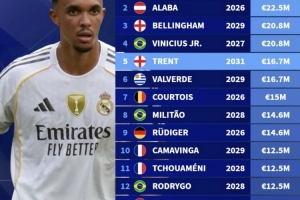 体育资讯7月20日讯 德转更新皇马球员年薪排行榜,姆巴佩3130万欧第一。