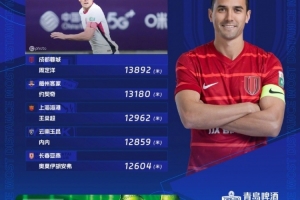体育资讯7月20日讯 中超联赛第17轮跑动距离榜公布,周定洋再次问鼎。