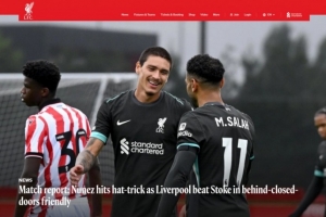 体育资讯7月21日讯 利物浦官网消息,达尔文-努涅斯在利物浦5-0战胜斯托克城的闭门友谊赛中上演帽子戏法。
