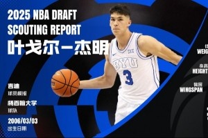 大学助理教练7号(其所在球队与杜克大学交过手):“身材优势明显。大一结束后外界对他期待不切实际,导致大二赛季很挣扎。今年卸下‘当家球星’包袱后反而打得更好了,投篮提升明显,防守端也肯拼命,1米98的体格足够用。现在他清楚自己的定位,不是核心但能成为优质轮换。今年在杜克大学的团队经历让他明白了这点,能打挡拆、会传球,这些经历磨平了他的棱角。”