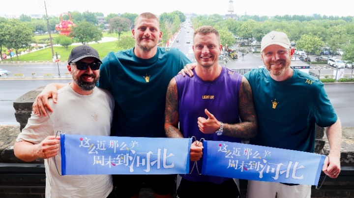 约基奇中国行周日来到石家庄站,一行人前往正定隆兴寺参观,约老师还在活动中大秀中文。