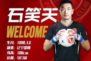 体育资讯7月21日讯 中甲辽宁铁人俱乐部官方宣布,青岛西海岸门将石笑天正式加盟。