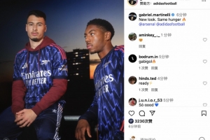 马丁内利和斯凯利一同出现在照片中,两人身穿着以深邃海军蓝为底的新款客场球衣。马丁内利社媒配文:新面貌,同样的渴望🔥