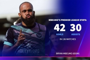 数据统计显示,姆贝莫136场英超贡献42球30助攻,库尼亚82场英超贡献29球13助攻。