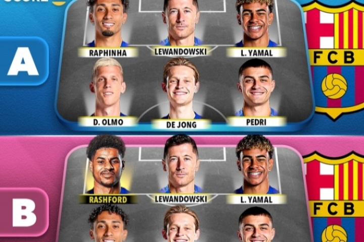 组合B:拉什福德、莱万、亚马尔、拉菲尼亚、德容、佩德里