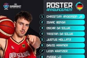 体育资讯7月22日讯 近日,德国男篮公布了欧锦赛16人名单,小瓦格纳、施罗德、泰斯在列。