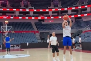 日前,已经抵达杭州的委内瑞拉男篮在杭州奥体中心体育馆进行适应性训练。