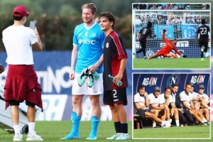 此役德布劳内首发出战,上演那不勒斯首秀,赛后多位阿雷索球员找到德布劳内,请求与他合影。