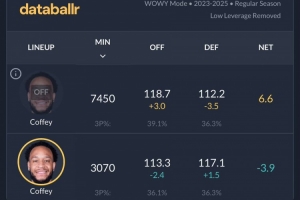科菲在场的3070分钟,快船百回合输3.9分;不在场的7450分钟,快船百回合赢6.6分!