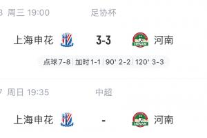 体育资讯07月23日讯 今日足协杯1/4决赛,申花点球大战10-11惨遭河南淘汰,本周日双方将在中超第18轮再次相遇。