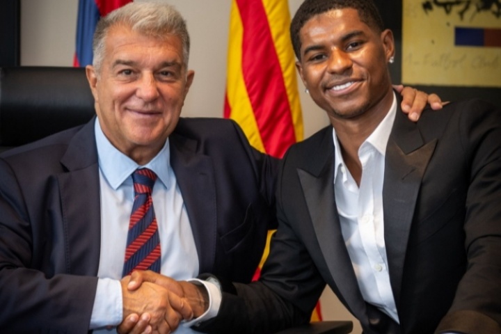 巴萨官推晒拉什福德与拉波尔塔握手图,配文:“欢迎来到世界上最好的俱乐部🤝”。