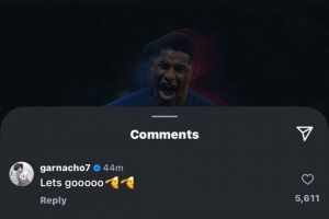 加纳乔在拉什福德官宣社媒下留言道:“Let’s go!(直译为“让我们出发”,也可理解为“冲啊!加油!”)🫡🫡”并配上了“敬礼”表情。