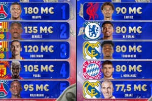体育资讯7月24日讯 利物浦已经官宣签下法兰克福前锋埃基蒂克,Actu Foot数据统计显示他也是法国历史转会费第6贵的球员。