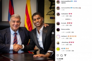 拉什福德先是晒出了自己和拉尔波塔的签约照,并配文:“巴萨万岁!”