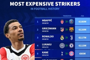 足坛历史前锋转会费榜:姆巴佩1.8亿欧居首,埃基蒂克9500万欧第5
