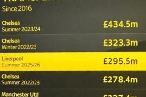 💰英超转会窗砸钱榜单:切尔西4.35亿英镑排名第一(自2016年以来)