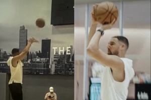 视频中可以看到克莱使用左手投篮,在训练中连续命中,而从训练师Chris Brickley的描述中可以得知,克莱使用左手跳投完成了十连击!