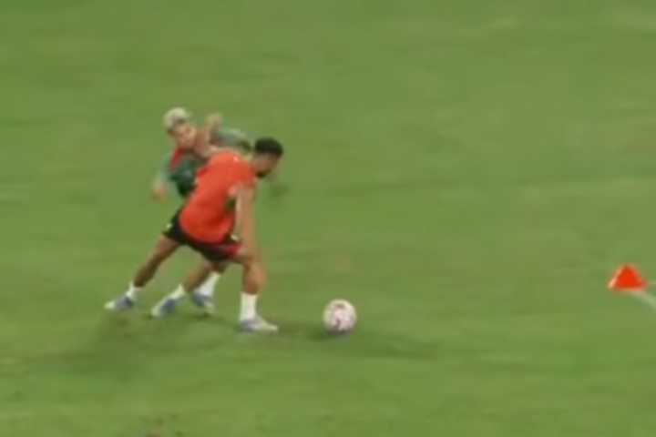 体育资讯07月25日讯 利物浦昨日在中国香港的启德体育场进行了公开训练,训练期间,萨拉赫与迪亚斯在一次抢球时互相进行了激烈的身体对抗,引得现场观众呼声连连。