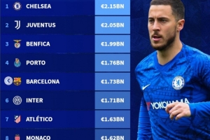 体育资讯7月25日讯 《转会市场》统计了各队历史转会费总收入情况,切尔西压尤文居首。