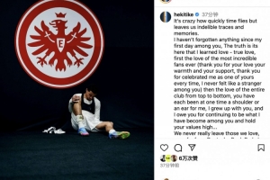 体育资讯7月25日讯 埃基蒂克正式从法兰克福转会利物浦,这位法国前锋更新社交媒体发长文深情告别法兰克福。