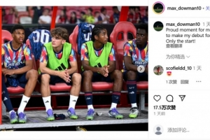 在阿森纳1-0米兰的友谊赛中,15岁的道曼替补登场完成阿森纳一线队首秀。
