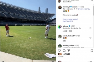 费迪南德与鲁尼在美国一起参加活动,两人在球场内颠球互传,最终鲁尼失误。