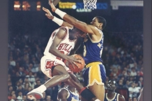体育资讯7月26日讯 今天,独行侠球星克莱-汤普森在INS转发了一张父亲迈克尔-汤普森在空中防守乔丹的照片,并写道:“我的天哪,我爹真能跳啊😂!”