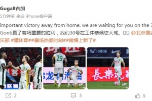 赛后,古加在社媒晒照并写道:“赢了客场重要的胜利,我们30号在工体恭候您大驾。🦿⚽️”