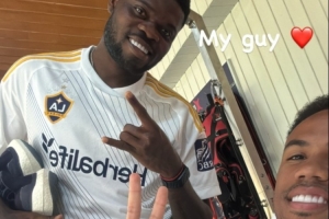 32岁的托马斯当前合同本月30日到期,据报道球员将自由身离队,在合照中托马斯身穿洛杉矶银河球衣。