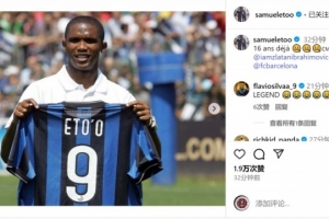 体育资讯7月27日讯 埃托奥更新社媒动态,纪念加盟国米16周年。