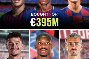 巴萨如今陷入财务状况不佳的窘境,与当年在转会市场上的操作也有很大关系。登贝莱、库蒂尼奥和格列兹曼3人的转会差价,就让巴萨巨亏3亿欧。