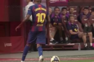 体育资讯07月27日讯 巴萨亚洲行首战对神户胜利船,双方半场暂时1-1战平。